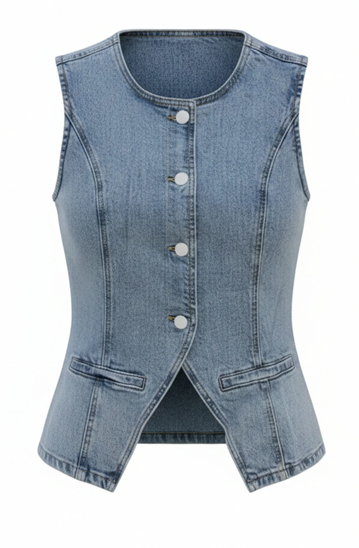 ๐ Julia Tailored Denim Sleeveless Button-Front Waistcoat Vest ๐