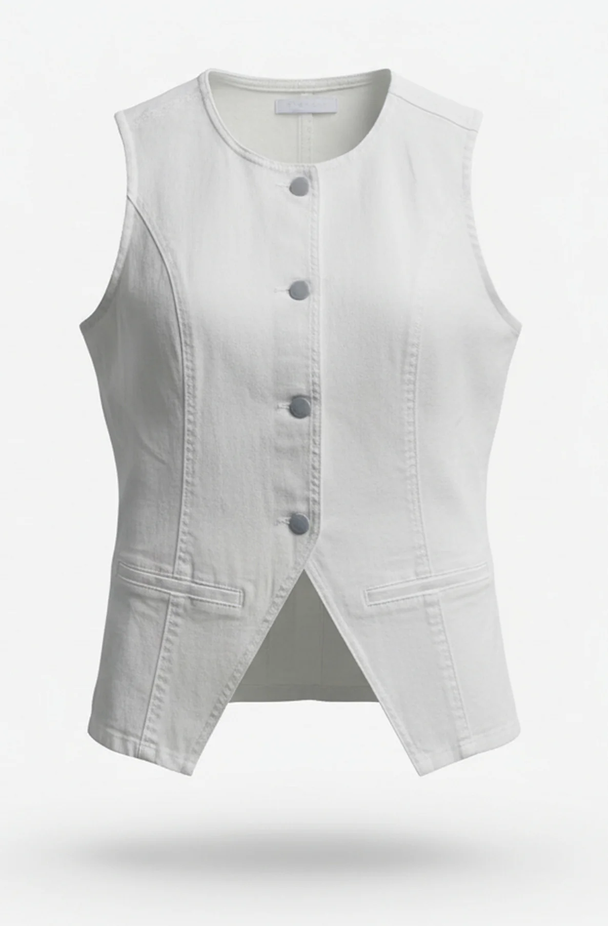 Julia Tailored Denim Sleeveless Button Front Waistcoat Vest-Ivory